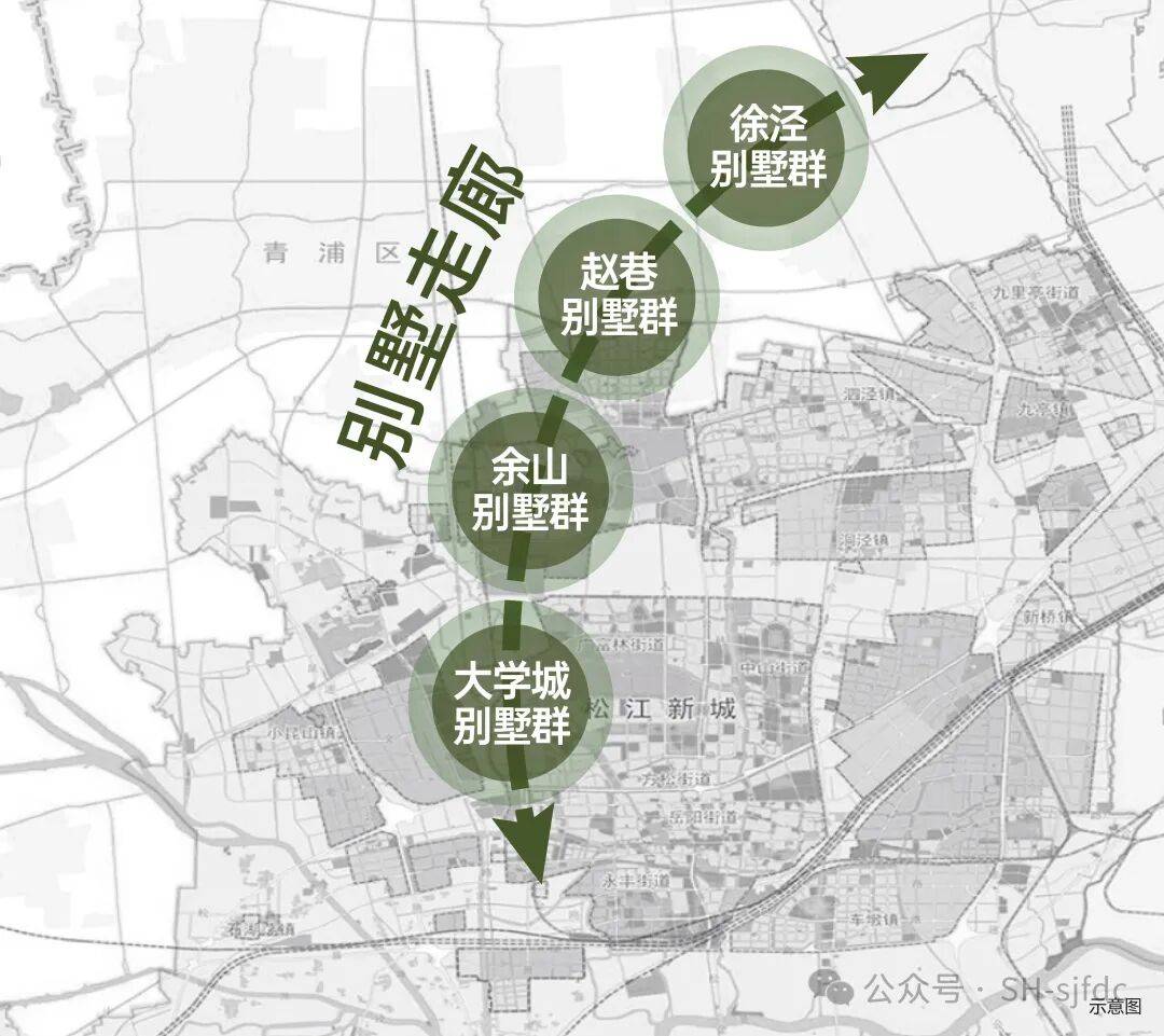 在这条廊道上,诞生了圣地维拉、佘山高尔夫、香水湾、泰晤士小镇等多个低密别墅区